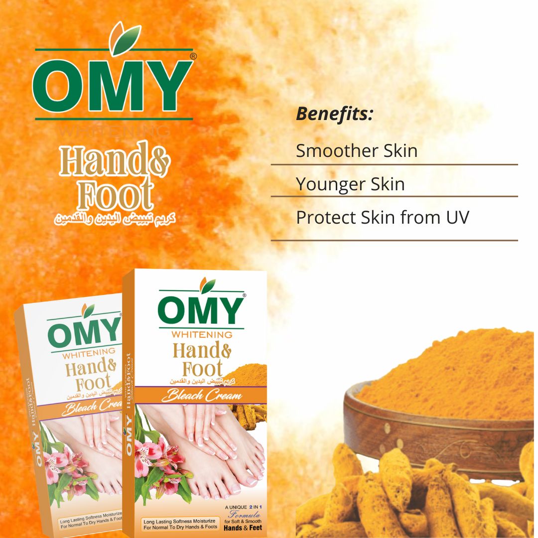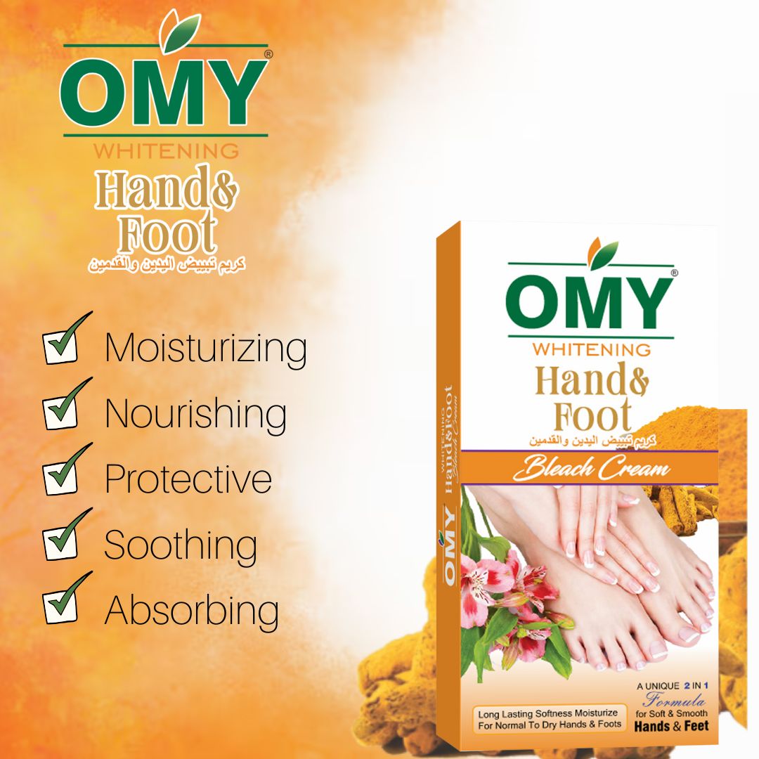 Omy Hand & Foot Bleach gently lightens dark areas, removes tan, and brightens the skin for soft, smooth, and radiant hands and feet.